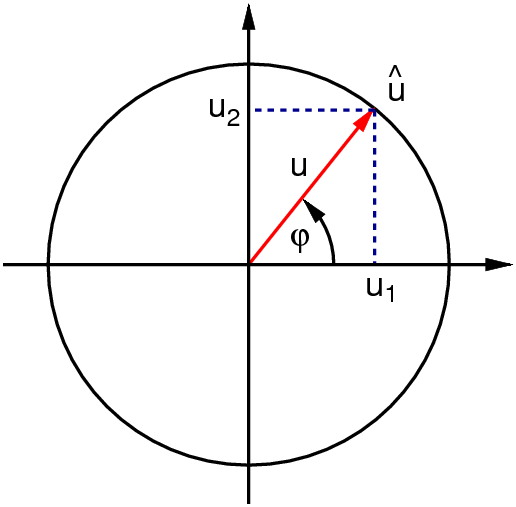 | û = (u1, u2) = (u cos φ, u sin φ) |