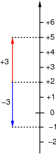 Prebivalcem na morski obali je dobro znano, da gladina morja ni zmeraj enako visoka: včasih je višja in včasih nižja. To se lepo vidi na lesenem pomolskem kolu, ki je zabit v morsko dno. Če v les naredimo vodoravno zarezo na primernem mestu, lahko višino gladine podamo z njeno razdaljo od te zareze – navzgor ali navzdol. Razdaljo na primer 0,5 metra navzgor zapišemo kot +0,5 m in navzdol kot −0,5 m. Vpeljana predznaka "+" in "−" povesta, ali je gladina povišana (povečana) ali znižana (zmanjšana) glede na izhodiščno zarezo.