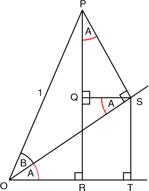 Računamo takole: sin (A + B) = PR = PQ + QR = PQ + ST = PS cos A + OS sin A = sin B cos A + cos B sin A. In pa takole: cos (A + B) = OR = OT − RT = OT − QS = OS cos A − PS sin A = cos B cos A − sin B sin A. Torej: