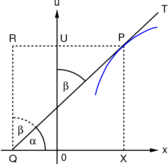 Odvod obratne funkcije je recipročna vrednost odvoda prvotne funkcije. Domnevo dokažemo takole. Tangenta na krivuljo u(x) tvori z osjo x kot α in z osjo u kot β, torej du/dx = tan α in dx/du = tan β. Velja: tan α = PX/XQ, tan β = PR/RQ = XQ/PX, zato tan α tan β = 1.