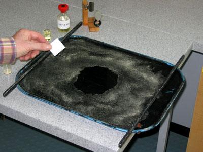 Oljni madež na vodi, posuti s prahom. Velikost madeža