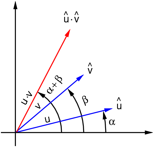 | û v̂ = uv (cos (α + β), sin (α + β)) . |