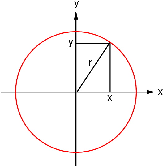 Iz sive davnine je poznana krožnica: krivulja, katere vsaka točka je enako oddaljena od izbrane točke, središča. Že stara ljudstva so jo risala s količkom in vrvico pri gradnji kolib in obzornih krogov. Mi bomo postavili koordinatni sistem v središče kroga. Potem pove hipotenuzni izrek