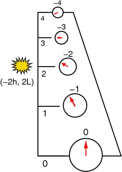 Kakorkoli že, s tem so vse ure sinhronizirane. Opazovalec, ki sedi v kateremkoli oglišču rešetke, vidi okoli sebe množico ur. Čim bolj so oddaljene od njega, tem manjši čas vidi na njih. Ura, kjer opazovalec vidi za 1 h manjši čas kot na lokalni uri, je od njega oddaljena za r = c · 1 h. Nasploh je na uri, ki je oddaljena za r, viden čas t = t0 − r/c, ko je na lokalni uri viden čas t0.