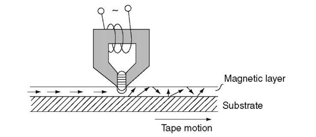 Kako shraniti časovno spremenljiv električni signal na izhodu iz mikrofona ali kamere? Tako, da na izhod priključimo primeren elektromagnet, ki dovajani električni tok "spreminja" v magnetno polje, in skozi to polje enakomerno vlečemo magnetibilni trak, da ga polje magneti. Močnejši električni tok povzroči močnejšo namagnetenost traku. Magnetni zapis pa kasneje beremo z obratnim postopkom: namagneteni trak vlečemo mimo elektromagneta, v katerem se zato inducira električna napetost med koncema tuljave. Izumili smo magnetni zapis in branje električnega signala.
