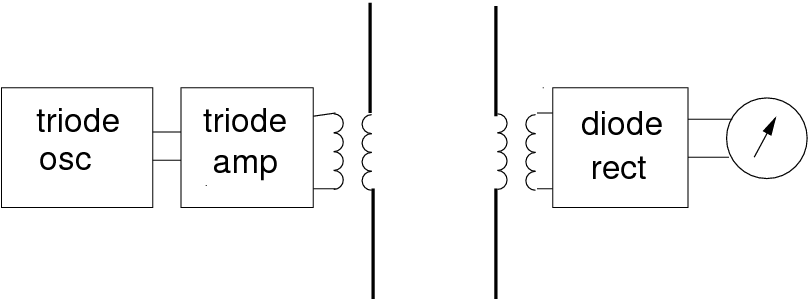 Merjenje šibkih napetosti si nadalja olajšamo z vključitvijo triode kot ojačevalca: namesto merilnika s tuljavo na tanki sučni žici lahko potem uporabimo robusten merilnik s tuljavo na spiralni vzmeti. V praktičnem elektronskem voltmetru uporabimo oboje: usmernik in ojačevalec.