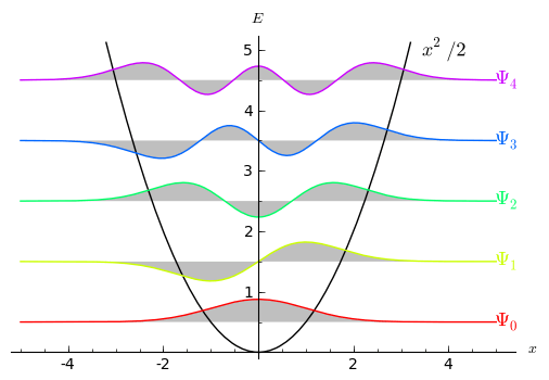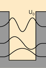 In podobno velja za energijo v potencialnem polju: ostre vrednosti E = K + W najdemo samo v takšnih valovnih funkcijah, ki zadoščajo lastni enačbi [(iħ∇)2/2m + W]ψ = Eψ. Za delec v neskončni potencialni jami, na primer, so to posamični harmonični valovi.