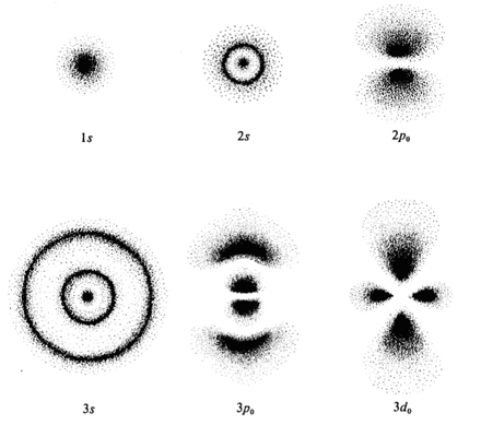 Kvadrat valovne funkcije je verjetnostna gostota, da se elektron znajde v kakšni točki v okolici jedra. Nazorno si jo predstavljamo kot oblak, ki ga gibajoči se elektron zarisuje okoli jedra.