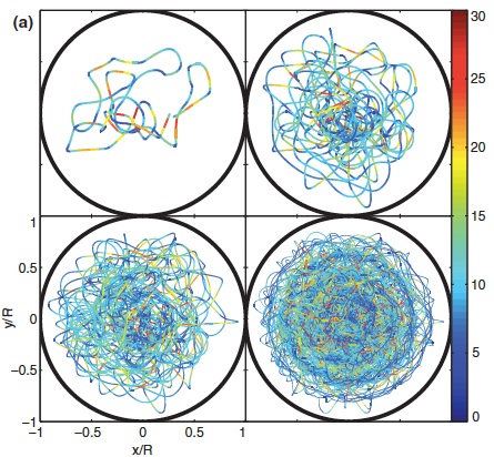 Dajmo hodca v krožno ogrado in vrtimo nihajočo posodo okoli navpične osi! Tir hodca se zdi sprva kaotičnen. Sčasoma pa začne pilotski val interferirati s svojo brazdo in časovno povprečje tira pokaže izrazite krožne maksimume. To je statistična porazdelitev hodčevih lokacij po prostoru. Ima obliko osno simetričnih stojnih valov. Razlika med statističnim stojnim "valovanjem" in pilotskim valom hodca je očitna.