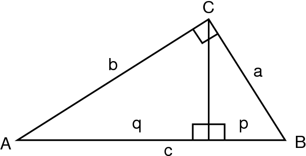 Pravokotni trikotnik za izpeljavo hipotenuznega izreka.
