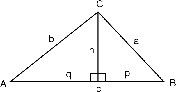 V splošnem trikotniku velja h2 = a2 − p2 in h2 = b2 − q2. Izenačimo desni strani, malo poračunamo, upoštevamo p + q = c in p = b cos A ter dobimo:
