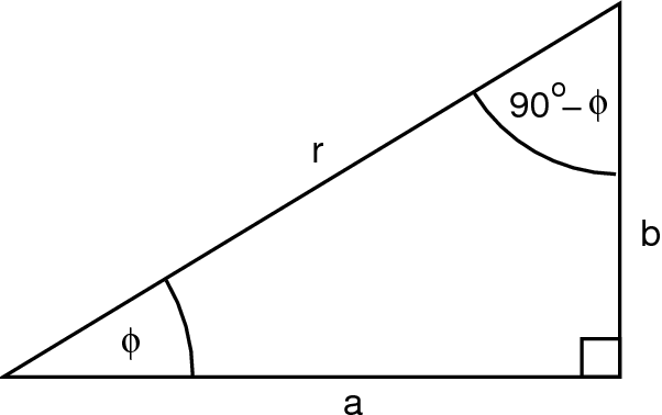 Ko z astrolabom merimo višino drevesa, moramo določiti obe oddaljenosti (projekciji) a in b točke na obodu astrolabovega kroga s polmerom r od vodoravne in navpične osi skozi središče tega kroga.